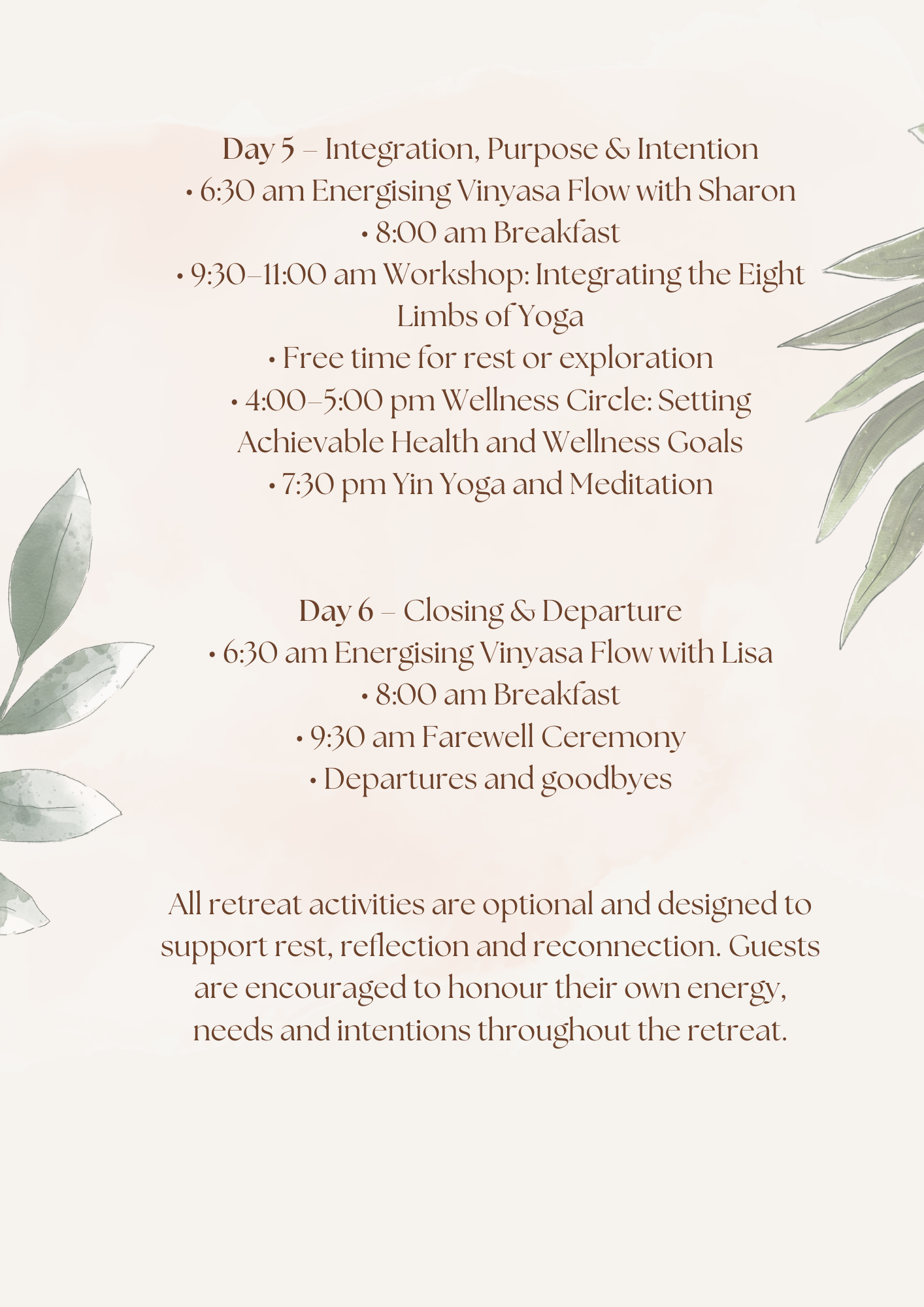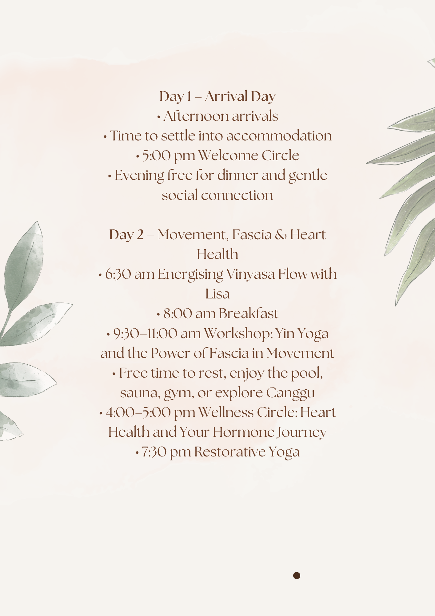 This retreat is an invitation to slow down, soften your edges, and return home to your body with renewed energy and purpose. You’ll leave feeling grounded, empowered, and deeply restored.